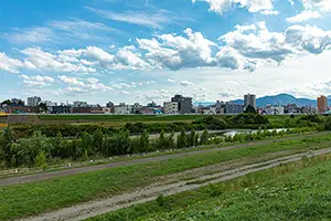 こちらの「豊平川河川敷のフリー写真素材」は、個人・法人問わずご利用可能です。